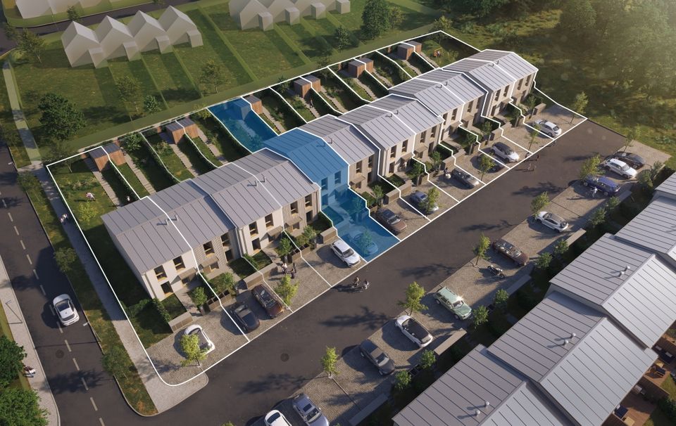 Kaskády Votice, bydlení v hospodárných rodinných domech. Jasná, zřetelná a srozumitelná urbanistická kompozice. Vše má své správné místo, svůj správný tvar.