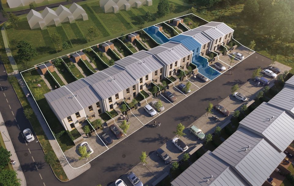 Kaskády Votice, bydlení v hospodárných rodinných domech. Jasná, zřetelná a srozumitelná urbanistická kompozice. Vše má své správné místo, svůj správný tvar.
