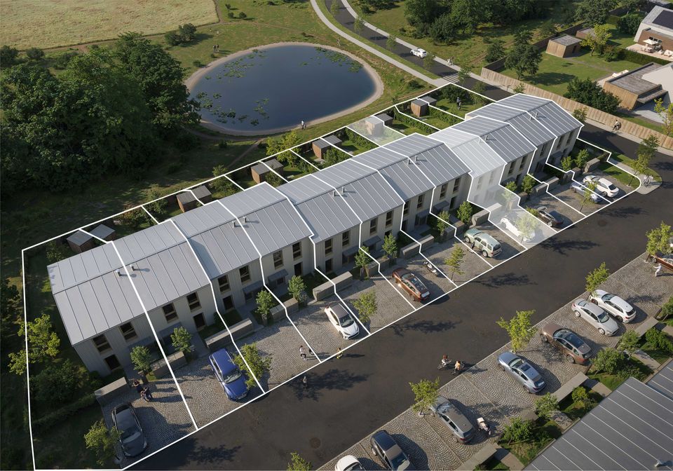 Kaskády Votice, bydlení v hospodárných rodinných domech. Jasná, zřetelná a srozumitelná urbanistická kompozice. Vše má své správné místo, svůj správný tvar.